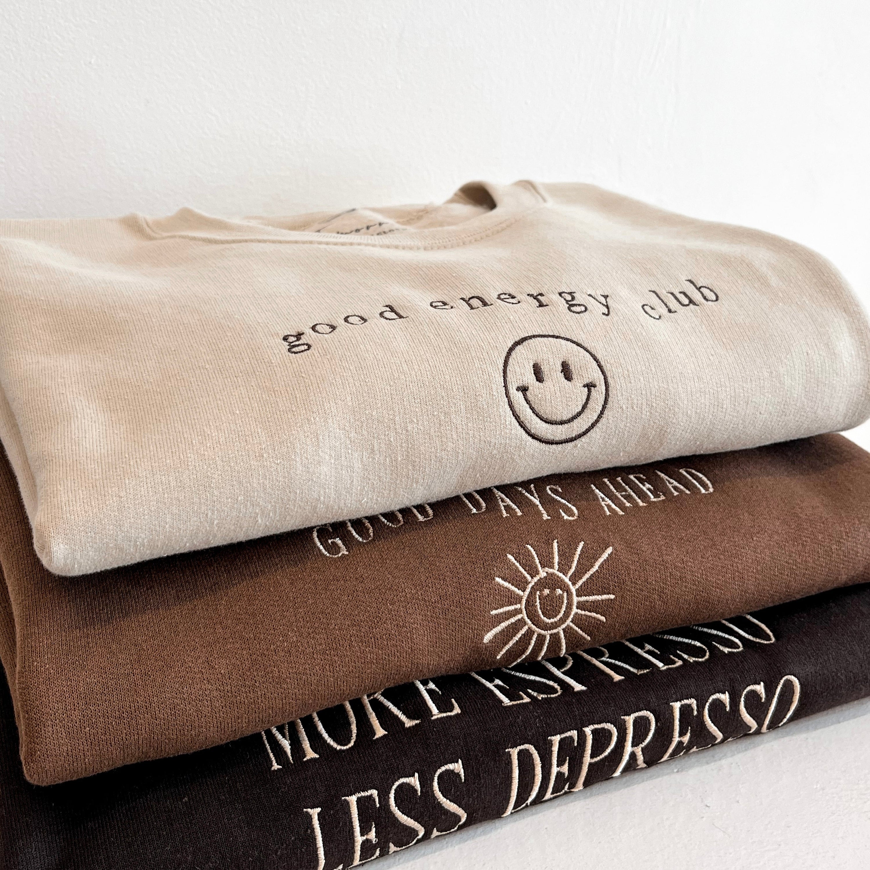 Explore our exclusive brand, Tomorrow, featuring thoughtfully embroidered sweatshirts, t-shirts, and tote bags. Made for today, inspired by tomorrow.